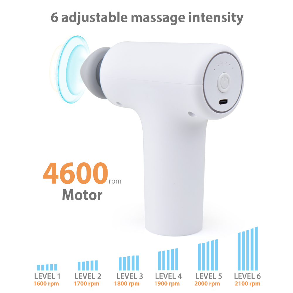 Conception à vitesse réglable : Pour soulager différents types de douleurs musculaires, le mini pistolet de massage est équipé de plusieurs niveaux de vitesse (faible, moyen et élevé), vous permettant de trouver l’amplitude appropriée pour atténuer tous vos problèmes de douleurs musculaires.